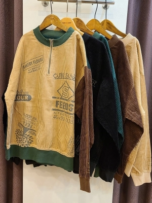 コーデュロイプリントクルーハーフZipプルオーバーです(^^)